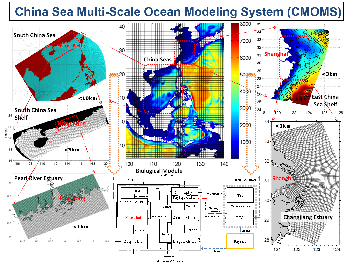 CMOMS is the three dimensional multi-spatiotemporal-scale coupled physical-biogeochemical modeling system of the China Sea that developed by ODMP, Hong Kong University of Science and Technology.